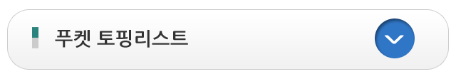 토핑리스트에는 산호섬, 라차섬, 피피섬, 카이섬등을 스피드보트로 떠나는 호핑투어 내지 요트로 떠나는 호핑투어, 푸켓 북쪽의 기암절경인 팜아만 카약투어등 다채로운 즐길거리들이 있으니 원하는 일정만 선택해서 저렴한 비용에 이용해 보시기 바랍니다.제 3일